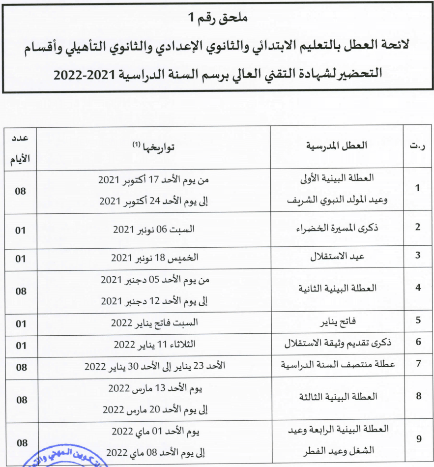 وحسب جدول العطل المدرسية، فتم تحديد من 17 إلى 24 أكتوبر 2021 أول عطلة بينية، أما الثانية فستكون ما بين 5 إلى 12 دجنبر 2021، والثالثة ستكون ما بين 13 إلى 20 مارس 2022، والرابعة ما بين 1 إلى 8 ماي 2022.